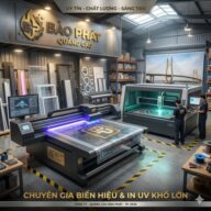 Công nghệ in UV trên mọi chất liệu: kính, gỗ, alu... cho độ bền màu tuyệt đối và hình ảnh sắc nét chuẩn thương hiệu.